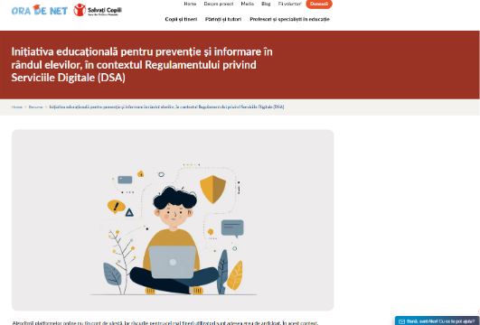 The European Union has established a modern framework to ensure a transparent, accountable, and safe digital environment, with a particular focus on protecting children and young people. In Romania, the Safer Internet Centre (SIC Romania), coordinated by Save the Children Romania, has taken an active role in translating these principles into practice at the educational level. Through a national educational initiative launched on 26 September 2025, the Romanian SIC promotes digital education as a key driver for the practical implementation of the DSA across the national school community.